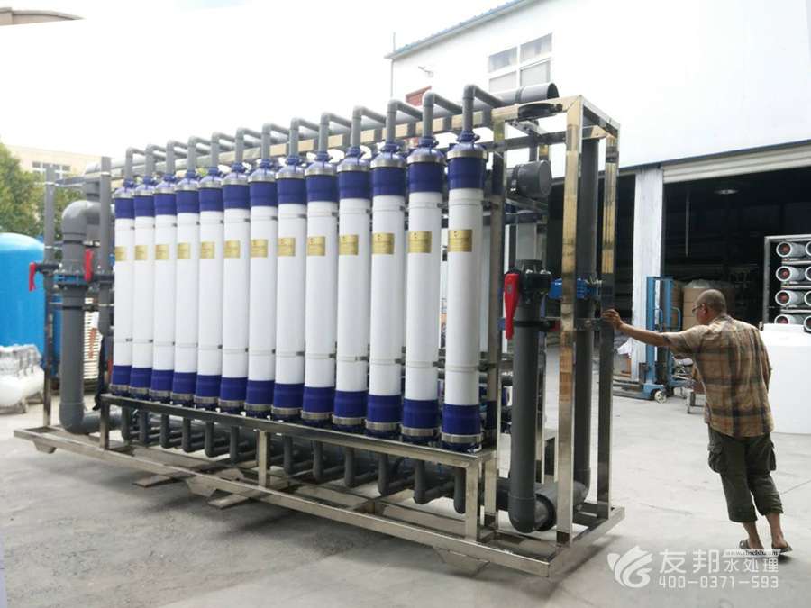 超濾技術是一種納米級薄膜純物理分離技術,中空纖維超濾過濾是以中空纖維膜絲為過濾介質,以膜絲內外壓差為驅動國,按一定的過濾孔徑對溶液中不同物理直徑大小的物質進行分離的過程,以達到對溶液凈化、分離、提純、濃縮的目的。