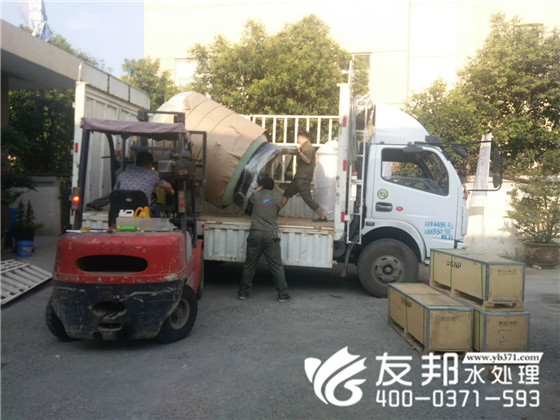 2018年8月15日鄭州友邦師傅們?yōu)榱瞬坏⒄`客戶生產,創(chuàng)造效益,早早便開始裝車發(fā)貨,這套設備用作許昌市小型水廠生產。