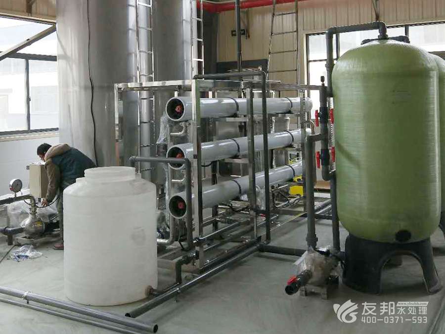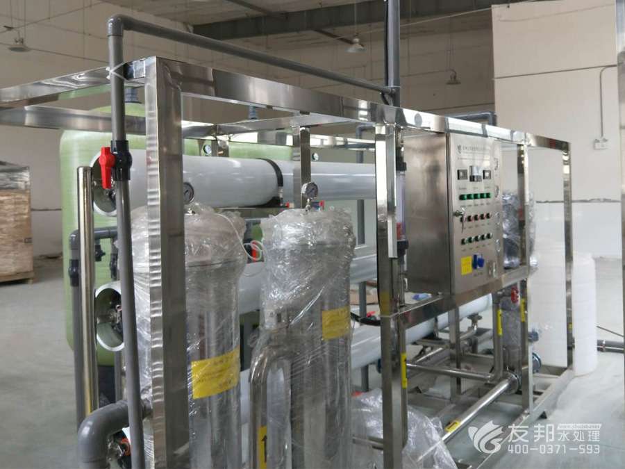 為滿足用戶需要,盡可能地減少各級的污染,延長設備的使用壽命、減少操作人員的維護工作量.在工藝設計上,取達自來水標準的水為源水,再設有介質過濾器,活性碳過濾器,鈉離子軟化器、精密過濾器等預處理系統、RO反滲透主機系統、離子交換混床(EDI電除鹽系統)系統等。 系統中水箱均設有液位控制系統、水泵均設有壓力保護裝置、在線水質檢測控制儀表、電氣采用PLC可編程控制器,真正做到了無人職守,具有更高的性價比和設備可靠性。