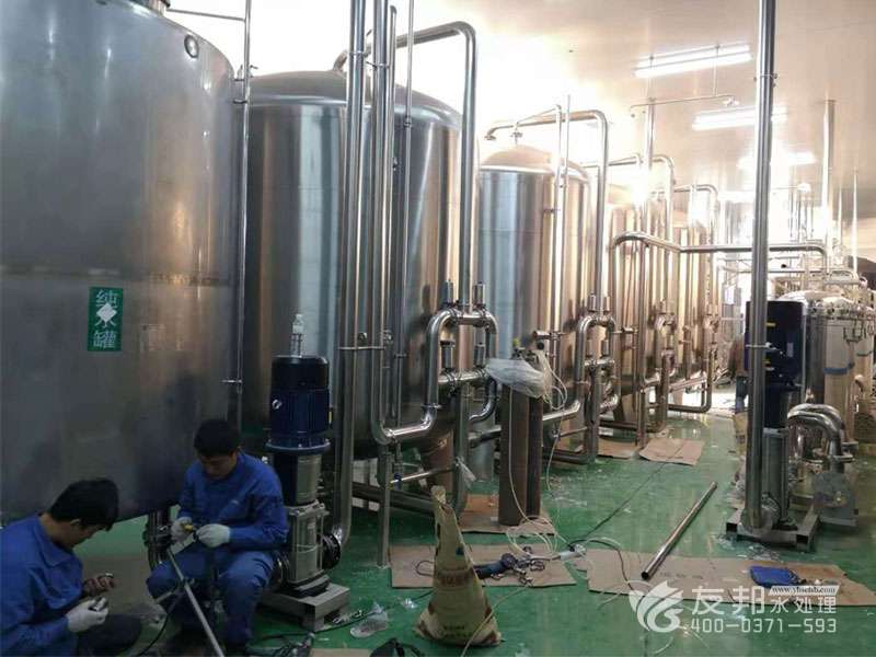 名仁蘇打水大型純凈水設備安裝調試現場